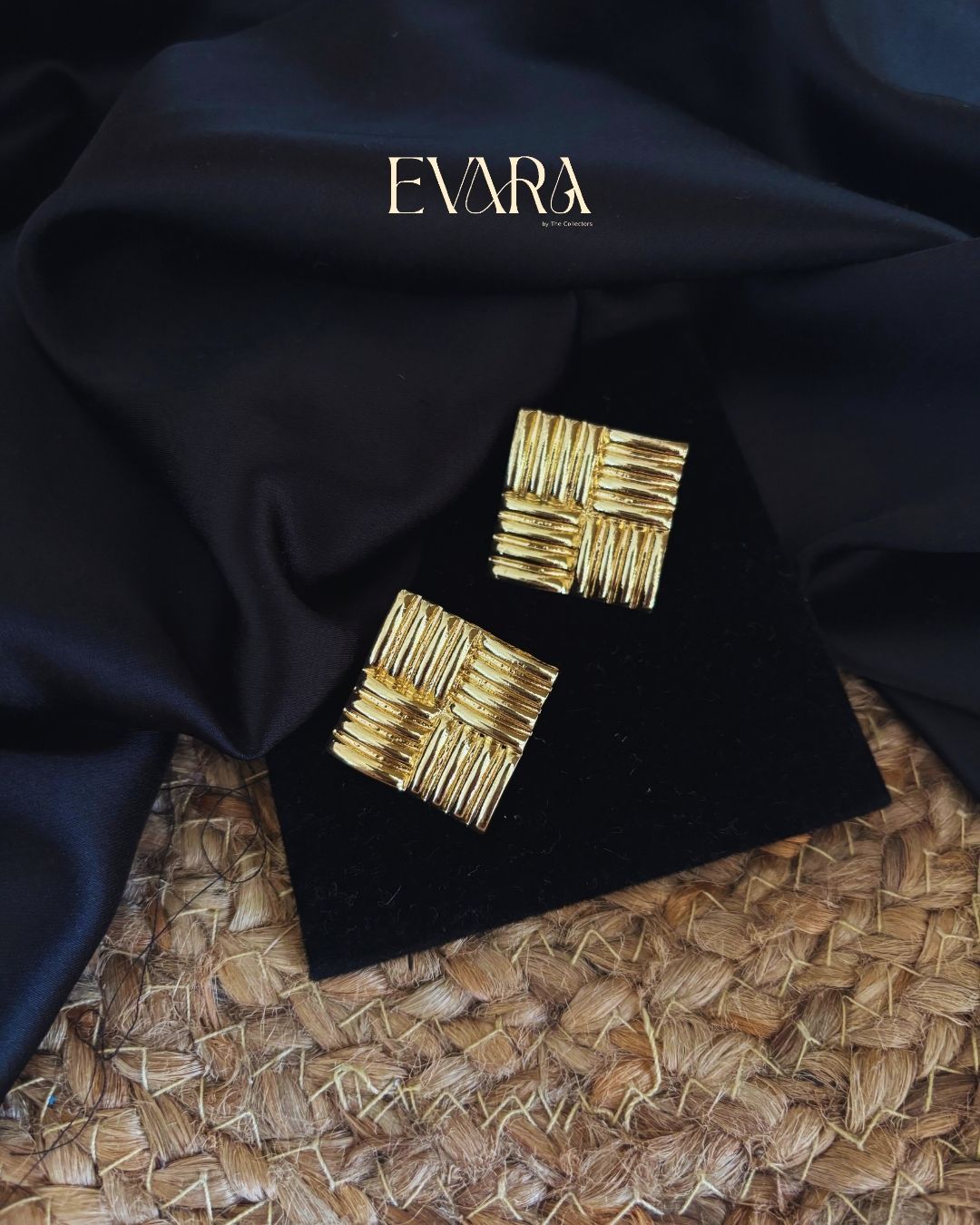 The Gilded Grid earrings are a stunning blend of structure and shine. With their bold square shape and raised, ridged detailing, these earrings make a powerful style statement that channels vintage charm and modern edge.