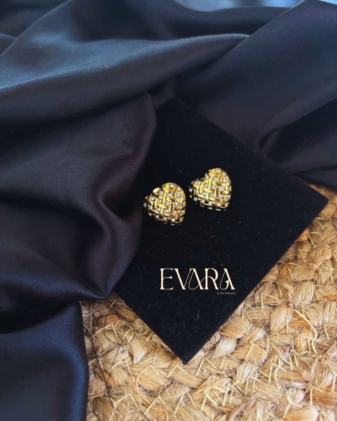 The SparkleHeart studs feature a petite heart silhouette delicately encrusted with tiny diamond-like stones. Subtle yet radiant, they’re perfect for everyday shine or thoughtful gifting.